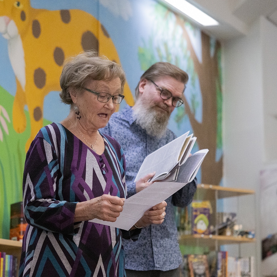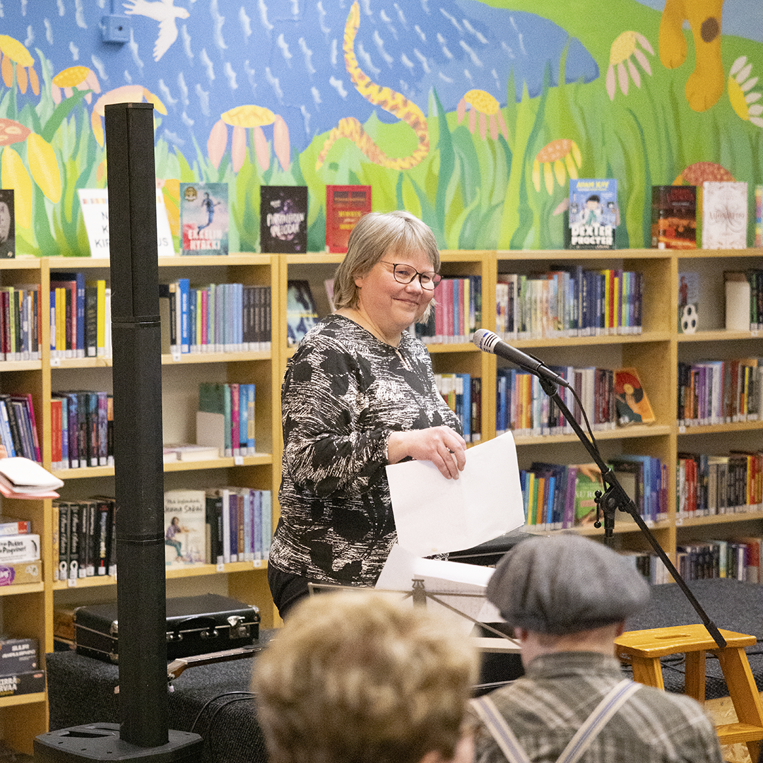Muistelukeruun kirjoittajat nousivat vuorollaan eteen, osa itse, osa valittujen lukijoiden kautta. Tarinat veivät kuulijat Sieppijärven koulujen pieniin kirjastohuoneisiin, kirjastoauton keltaiseen valoon, ensimmäisiin Peppi Pitkätossun tai Viisikko‑kirjan sivuihin ja yläasteen hyppytunneille, jotka kuluivat kirjaston rauhassa jälki-istunnon uhalla.