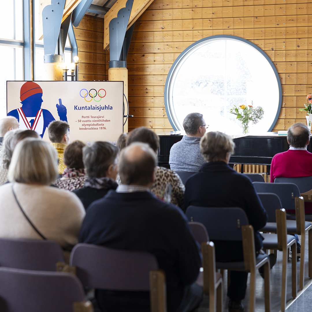Äkäslompolon Pyhän Laurin kappelissa vietettiin lauantaina 28.3.2026 arvokasta kuntalaisjuhlaa, jossa muistettiin Pertti Teurajärven historiallista saavutusta, viestihiihdon olympiakultaa Innsbruckissa vuonna 1976.